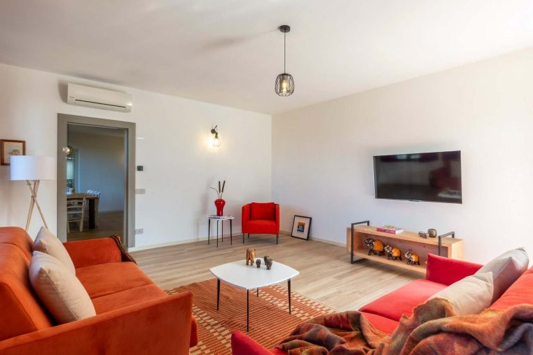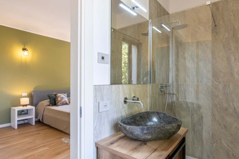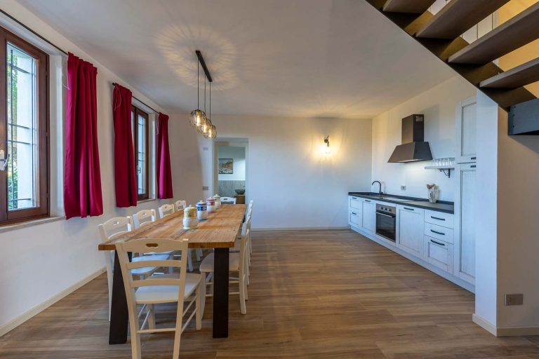 Casa Lavanda spans over two levels and boast exceptionally generous spaces, rare in most accommodation properties. On the ground floor, you’ll find a large living room with high-quality finishes and TV area and at the heart of the home: a spacious, fully equipped kitchen with dishwasher and a grand central table, where every meal becomes a shared Italian experience.