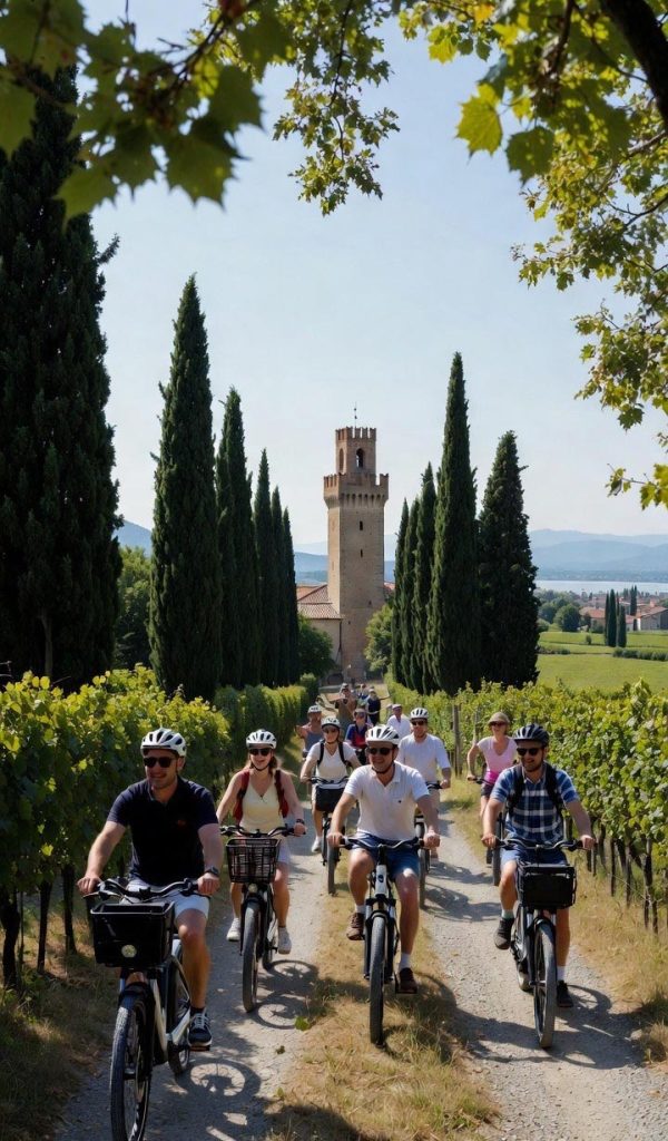 Set off on two wheels — by e-bike or Vespa — to uncover the enchanting villages scattered among the morainic hills. Meander through scenic country roads lined with vineyards and olive groves as you visit ancient towns like Borghetto sul Mincio, Castellaro Lagusello, Pozzolengo, and San Martino della Battaglia. Between cobbled lanes, medieval towers, and breathtaking views, each stop reveals the soul of Lake Garda’s countryside — where history, nature, and Italian beauty meet in perfect harmony.